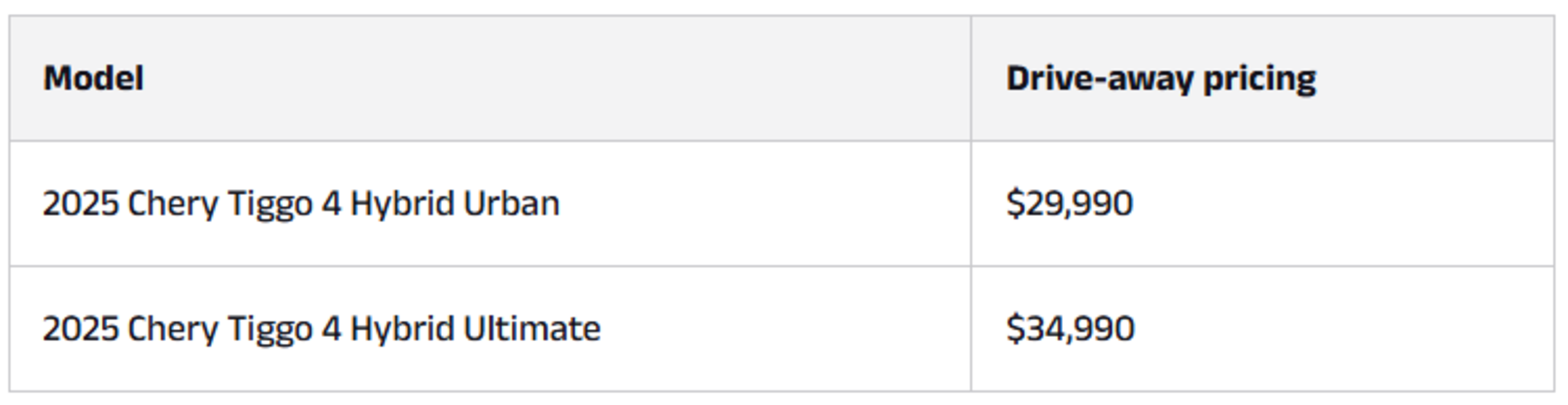 2025 Chery Tiggo 4 Hybrid Price and Specs